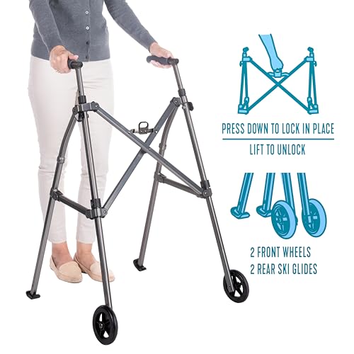 Lightweight and Portable : Weighing just 7 pounds, this lightweight walker is easy to lift and transport; it collapses into a compact 6 by 8 inch footprint, so you can use it for assistance while on vacation or when running errands at the store