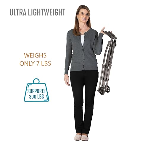 Lightweight and Portable : Weighing just 7 pounds, this lightweight walker is easy to lift and transport; it collapses into a compact 6 by 8 inch footprint, so you’ll use it for assistance at the same time as on vacation or when running errands at the store