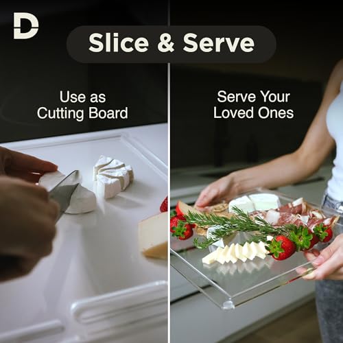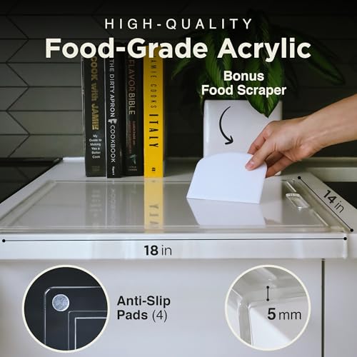 DIAMONDSLICE Clear Acrylic Cutting Board for Countertop (18×14 inches) with Food Scraper | Multipurpose Large Counter Cutting Boards & Serving Platter for Kitchen – Essential Kitchen Decor Gifts