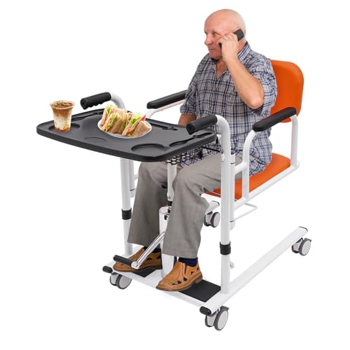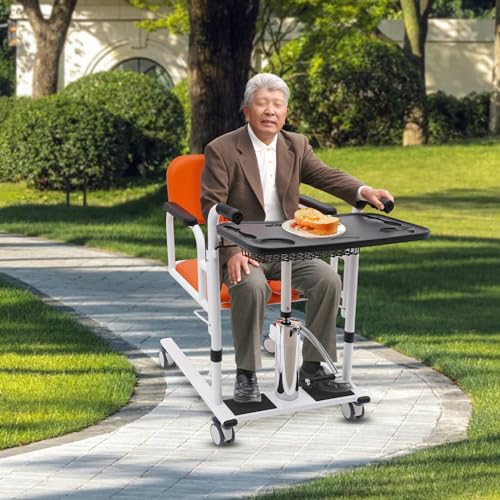 【Easy Assembly and Mobility】: Designed for convenience, this hydraulic transfer chair includes all assembly accessories, is easy to clean, and features four silent wheels with brakes for effortless transport and safe positioning, enhancing caregiving efficiency.