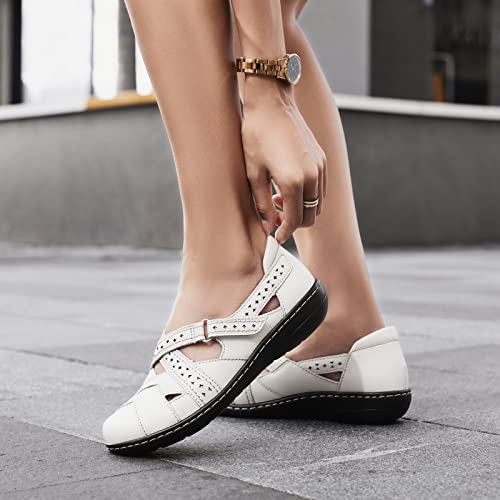 Irrefour Women’s Classic Genuine Leather Casual Loafer Cute Slip-On Fashion Closed Toe Flat Sandal Comfy Work Sandal Everyday Walking Shoe