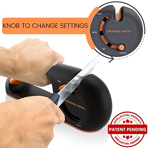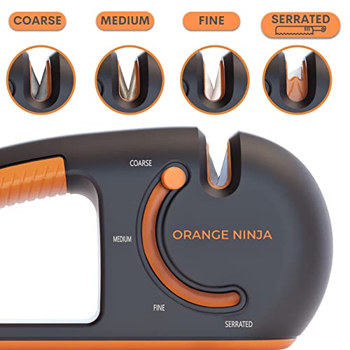 Orange Ninja 4-Stage Knife Sharpener – Premium Kitchen Knife Sharpeners – Adjustable Handheld Manual Blade Sharpeners for Kitchen, Pocket Knives Sharpener, Chefs & Serrated Knives by Sharp Pebble