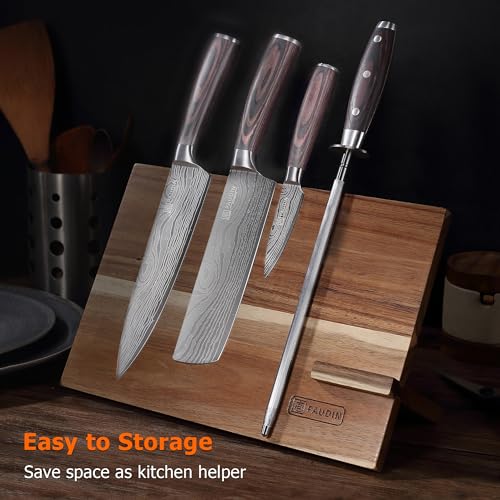 ERGONOMIC HANDLE: Luxury pakkawood handle is non-slip and comfortable, suitable for both right and left-handed users. Its triple rivet design adds extra strength, durable construction and combination of high quality steel making the knife honing rod resistant to rust, corrosion, bending, or breaking.