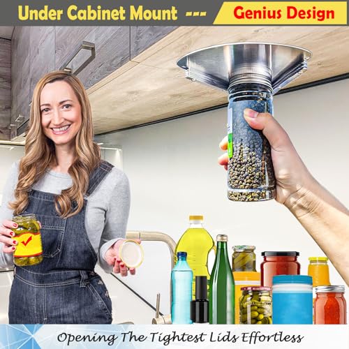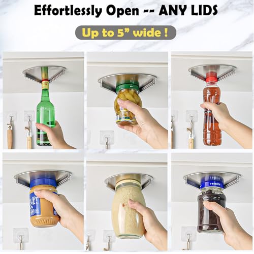 Upgraded Stainless Steel Jar Opener for Seniors, Under Cabinet Jar Openers for Weak Hands, Jar Lid & Bottle Cap Opener Tool, Under Counter Can Opener, One Handed Jar opener