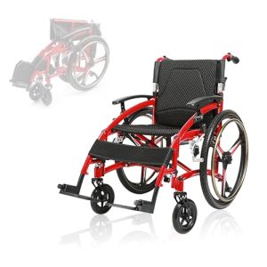 Wheelchairs for Adults, Ultra Lightweight Magnesium Aluminum Alloy 33 lbs Folding Manual Wheelchair, All Terrain, Seat W18 * D17”, 220 lbs. Silla de Ruedas Assembly Free