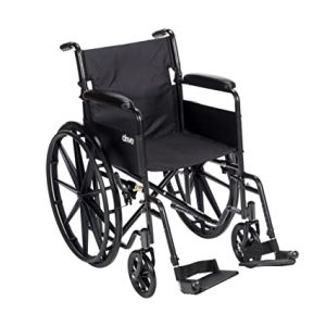 Drive Medical SSP118FA-SF Silver Sport 1 Folding Transport Wheelchair with Full Arms and Removable Swing-Away Footrest, Black