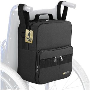 iMedic Deluxe Wheelchair Bag – Wheelchair Accessories for Adults – Wheelchair Bags to Hang on Back – Wheelchair Backpack – Wheelchair Storage Accessories – Electric Wheelchair Accessories – Black