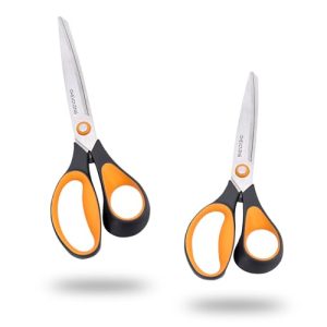QMVESS Premium Fabric Scissors 9.5 Inch Heavy Duty Scissors All Purpose Titanium Coating Forged Stainless Steel Sewing Scissors, Ergonomic Comfort Grip Shears, for Fabric Leather Carpet (Black Gray)