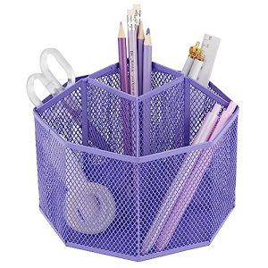 Annova Mesh Desk Organizer Rotate with 5 Compartments Spinning Tidy Candy/Pen Holder Office, Art Supply, Storage, Classroom, Home (Purple)